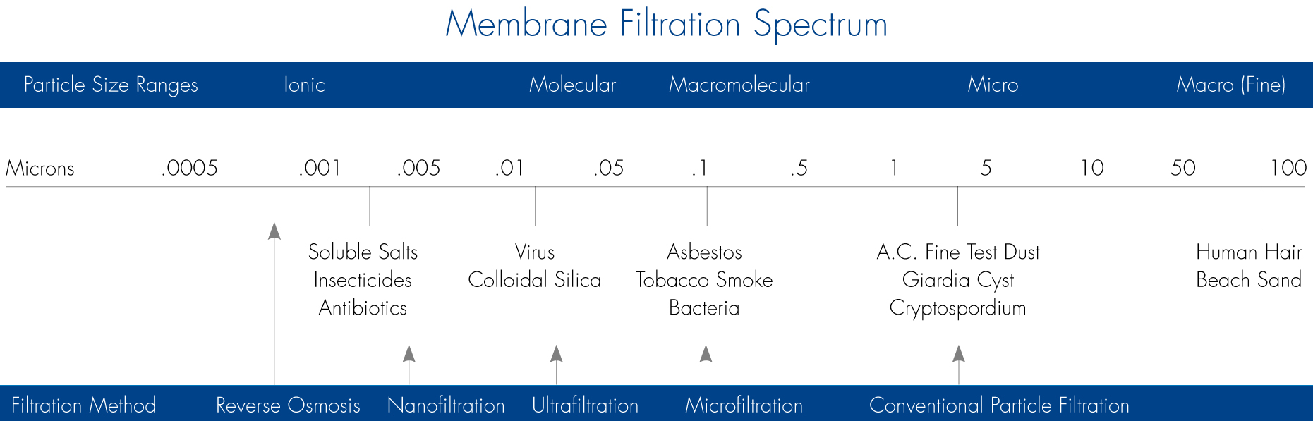 Bacteria and protozoa are the most common microorganisms you can find in drinking water. To remove them from the water, use a microfilter with a pore size no larger than 0.3 microns. Protozoa like Giardia and Cryptosporidium are much larger (1 to 15 microns) and can be removed by microfilters with pore sizes up to 1 micron. Microfilters can mechanically remove bacteria and protozoa. Keep in mind that chemical processes destroy microorganisms but do not remove them from the water. With mechanical filtration using a microfilter, water always passes directly through the filter, while particles are retained in it. Possible filters include ceramics, fiberglass, hollow fibers, etc., each with its advantages and disadvantages. The biggest advantage of ceramic filters, for example, is that they can be cleaned and reused. The flexibility of fiberglass allows the entire filter structure to be folded, creating an extremely large surface in a small space. Therefore, fiberglass filters have a very high dirt-holding capacity.