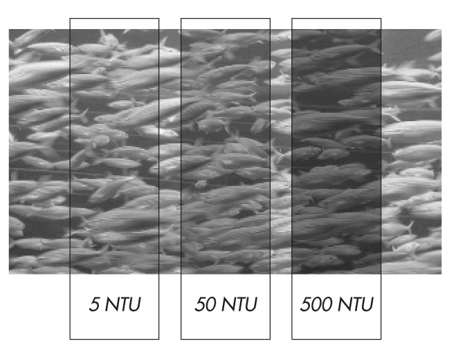 Water turbidity is measured in nephlometric turbidity units (NTU). According to the World Health Organization (WHO), tap water should have less than 1 NTU, and water with values of 5 NTU or higher is not suitable for use as drinking water without filtration.